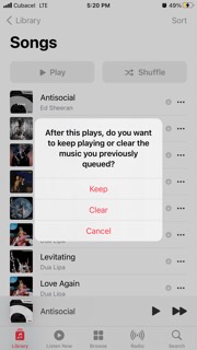 Desde que actualice la versión más reciente de iOS en un iPhone, aparecía no muy frecuente el mensaje de que hacer después de reproducir una canción, si quieras borrarla, conservarla o cancelar, después se volvió demasiado molesto debido a que en ocasiones solo quiero reproducir una sola canción y no solo aparece el mensaje sino que en automático agrega las canciones o listas de reproducción anteriores y algunas contienen más 300 canciones. Como quito dicho mensaje? Ayuda!! Urge!! Gracias!!