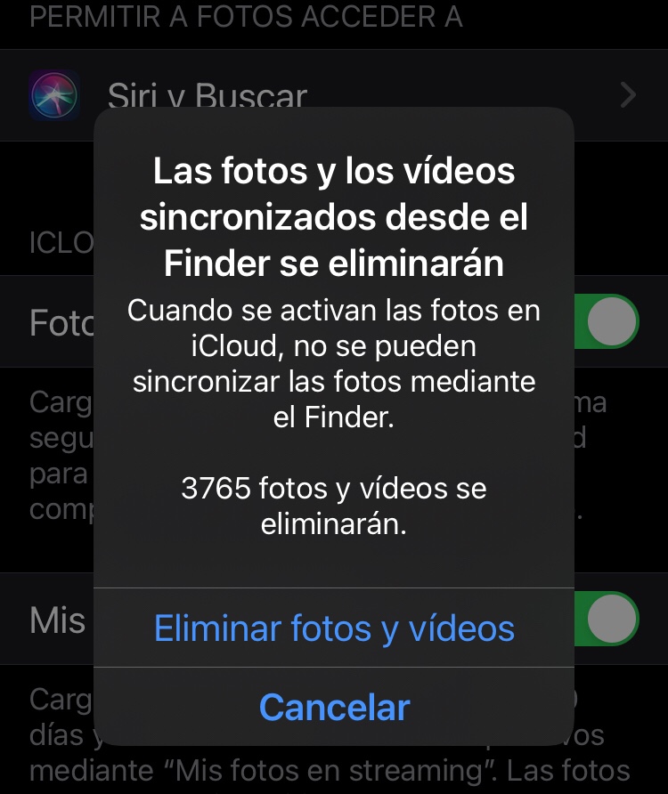 Al sincronizar icloud me dice que las fotos y videos se eliminaran del findee