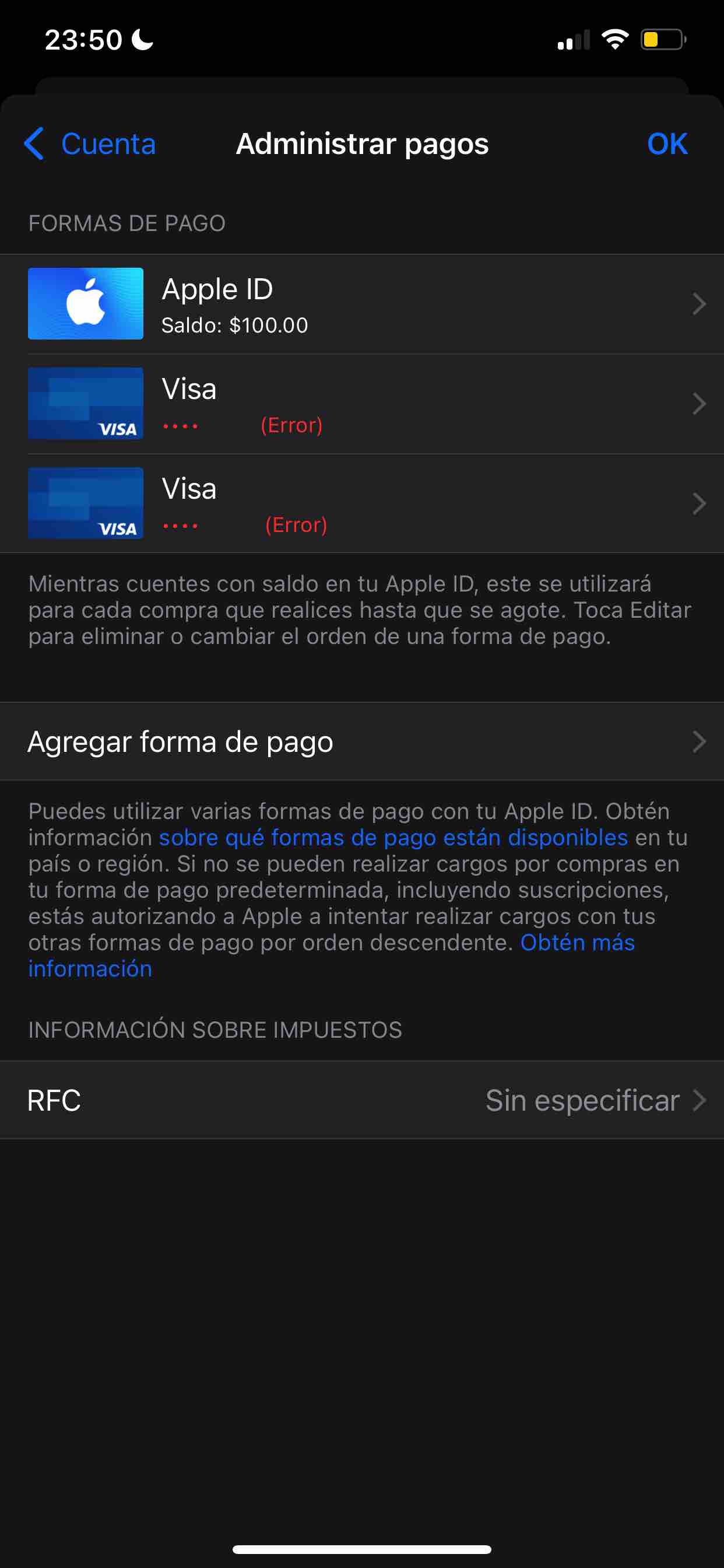 Es posible que debas tener una tarjeta de crédito registrada para hacer algunas compras, aunque las hagas con el saldo de tu Apple ID.