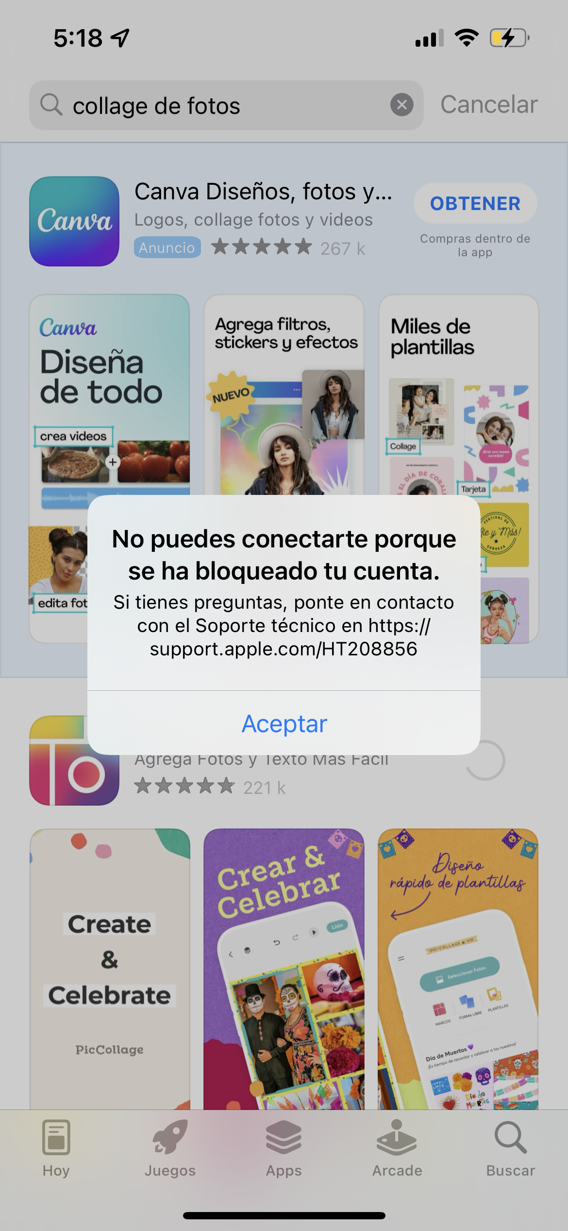 Mi cuenta está bloqueada en AppStore ,