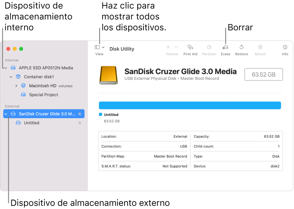 Muchas gracias por la imagen. Por lo que veo en ella al tener como esquema de mapa de particiones el tipo MBR hace que el disco este preparado para funcionar mejor en computadoras con Windows como sistema. ¿Tu disco efectivamente es de 1 TB? Si no hay problemas en borrarlo, intenta el hacer clic en el botón Borrar mientras seleccionas el disco externo, tal como lo esta en tu imagen. Si todo sale bien y si deseas usarlo en tu Mac como disco de respaldo para Time Machine por ejemplo, recuerda en seleccionar Mapa de particiones GUID y el formato APFS al momento de formatearlo.
