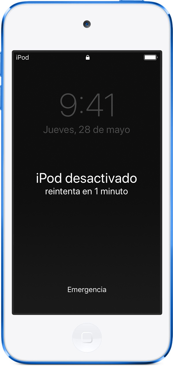 Si ingresas el código incorrecto muchas veces, verás un mensaje en el que se te indicará que el iPod touch se desactivó. Si no recuerdas el código, debes borrar el contenido del iPod touch, lo que elimina los datos y las opciones de configuración, incluido el código.