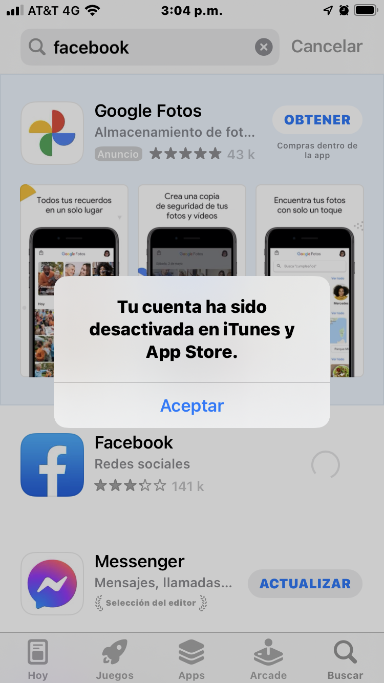 Si en tu dispositivo aparece un mensaje que indica que tu cuenta se desactivó o deshabilitó en el App Store, es posible que haya un problema con el método de pago que tengas registrado.