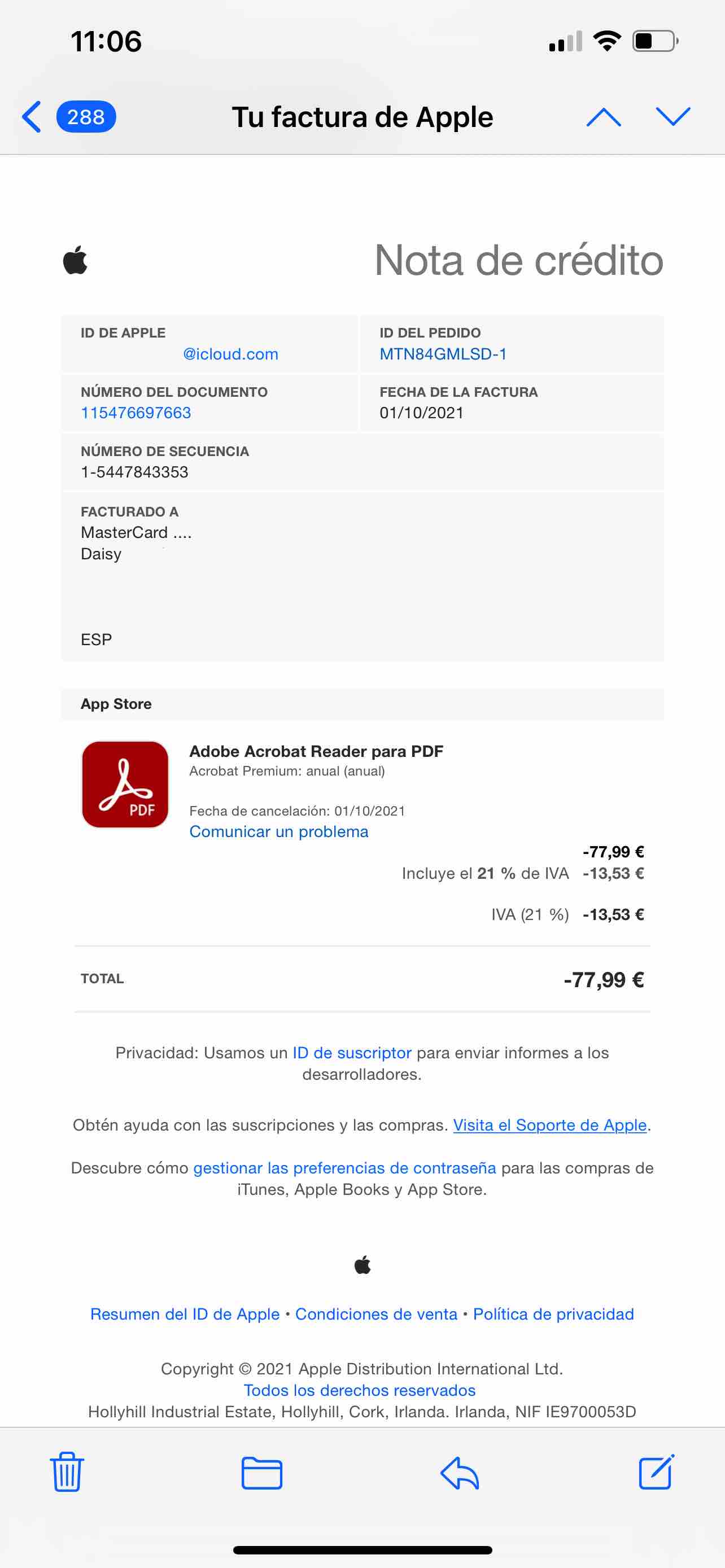 Hola, me ha llegado a mi correo una factura de Acrobat y no estoy subscripta, necesito que se anule totalmente.