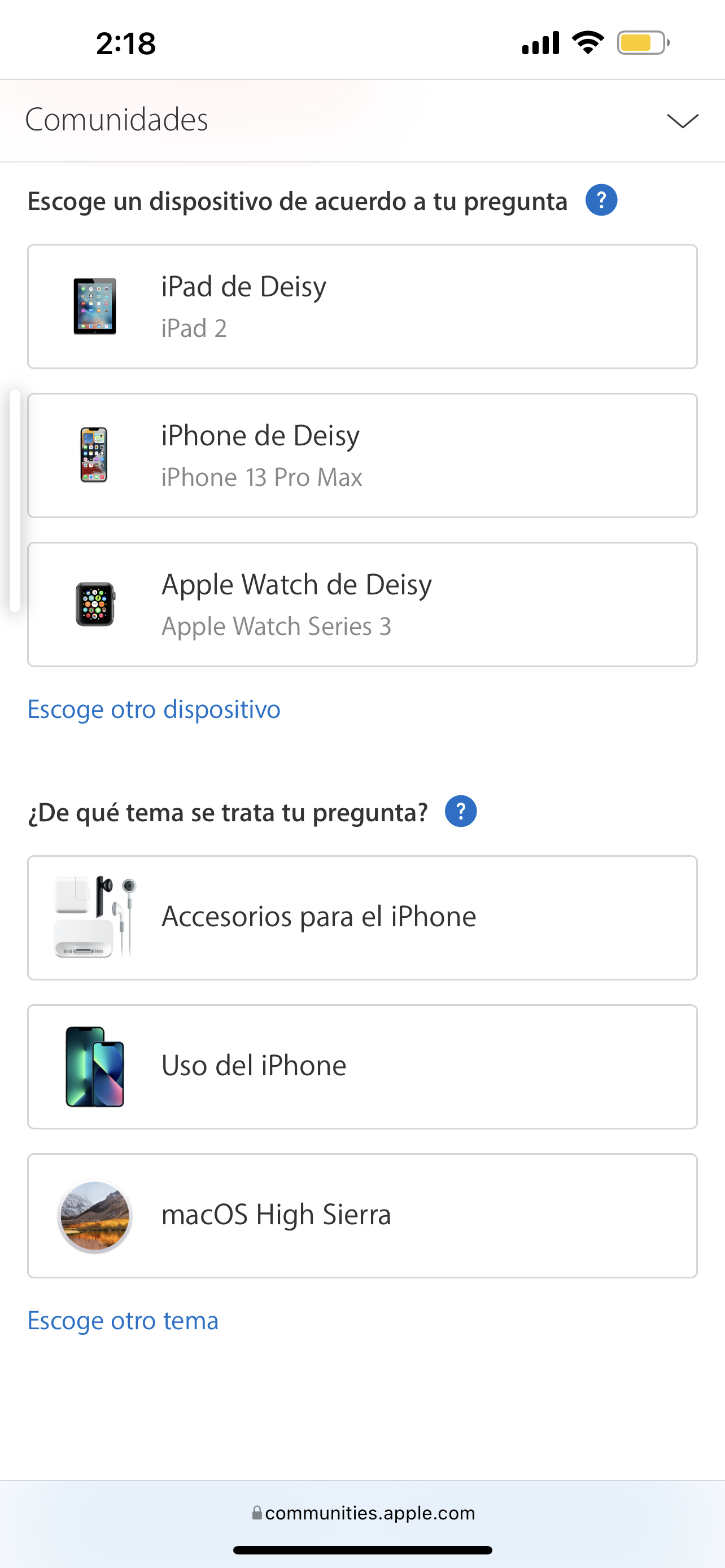 Un foro donde los clientes de Apple se ayudan entre sí con sus productos. Comienza con tu cuenta de Apple.