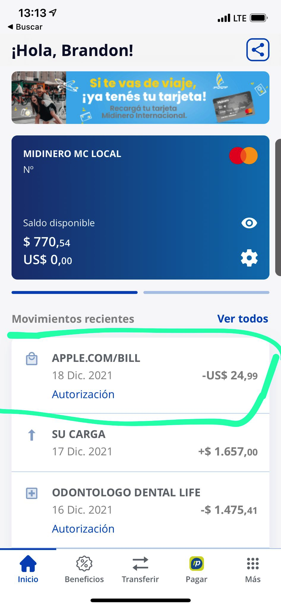 Ayuda por favor, me sacaron 24 dólares de mi tarjeta mi dinero supuestamente de Apple pero yo no tengo ninguna deuda ni tampoco compré nada, necesito que me digan quien me hizo eso y que me devuelvan mi dinero por favor