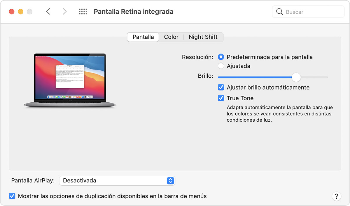 No veo la opción True Tone en mi MacBook