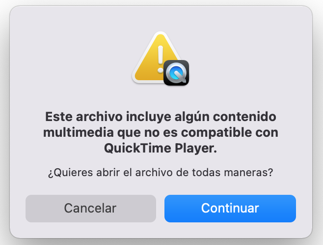 "Este archivo incluye algún contenido multimedia que no es compatible con QuickTime Player."