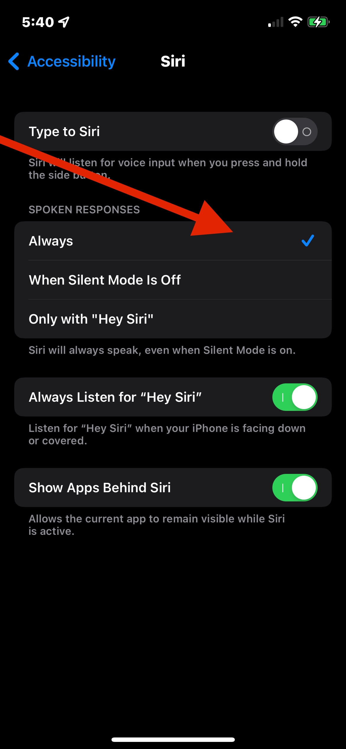 Si no responde con voz deberás activarlo aquí , en configuraciones ingresa a accesibilidad luego buscas siri y colócalo así como en la pruners imagen , luego en Siri y buscar lo colocas así , debes tener siri activado con oye siri