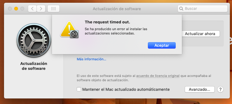Hola, tengo un macbook Air de 2016 y no puedo instalar la última actualización. Da error y no puedo continuar descargándola. La información del sistema es la siguiente: