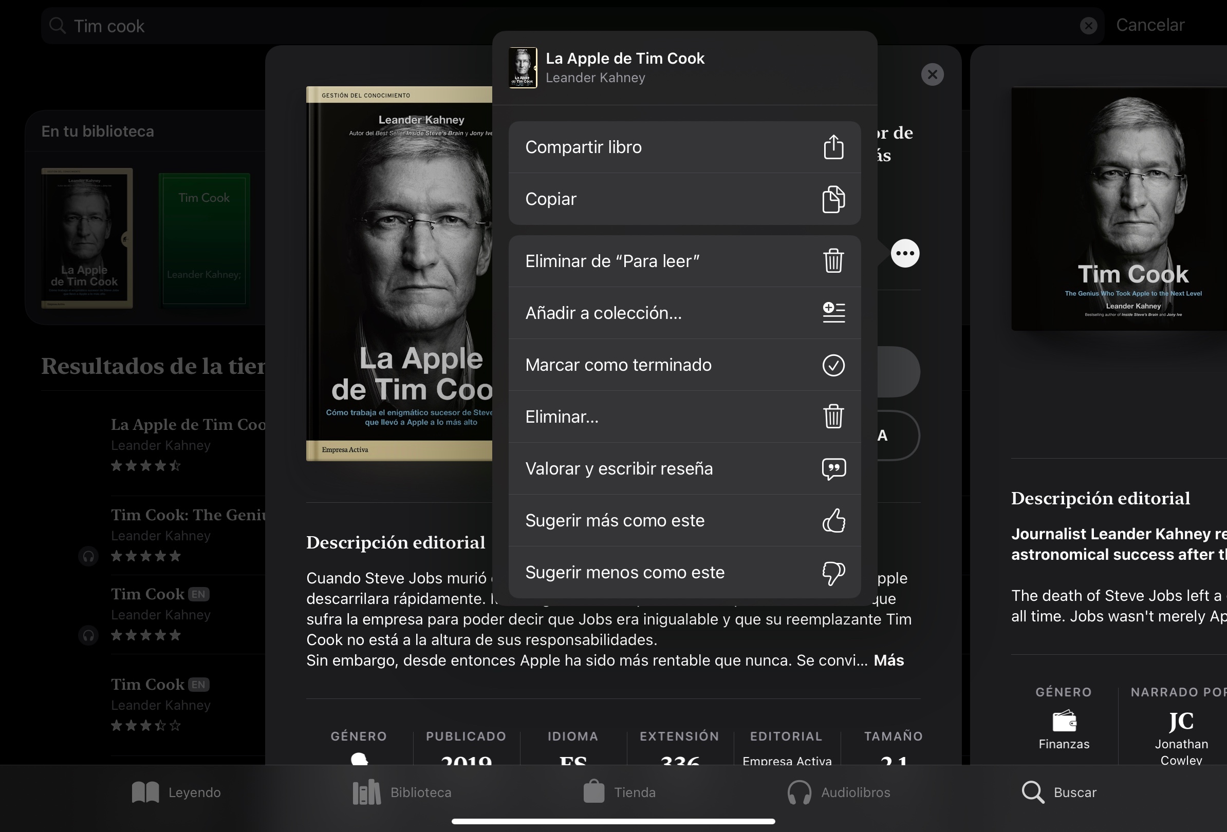 Le adjunto una captura de y vera que en donde tiene el libro comprado puede descargarlo y eliminar la descarga del dispositivo entre otras opciones.