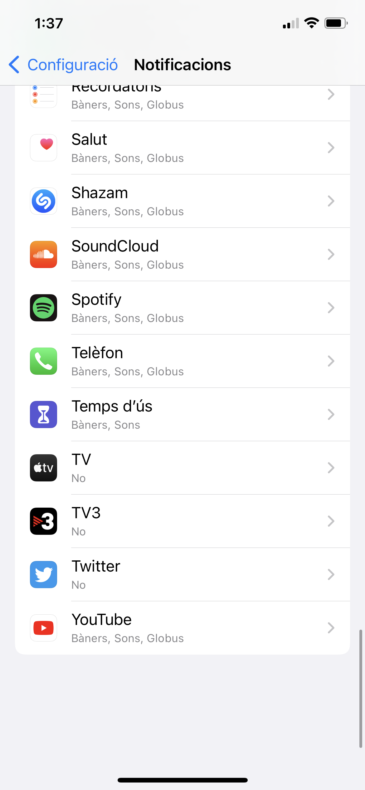 Voy al iphone a Configuracion - Notificaciones però no está el whatsapp 🤷♂️ Y por tanto no las puedo activar