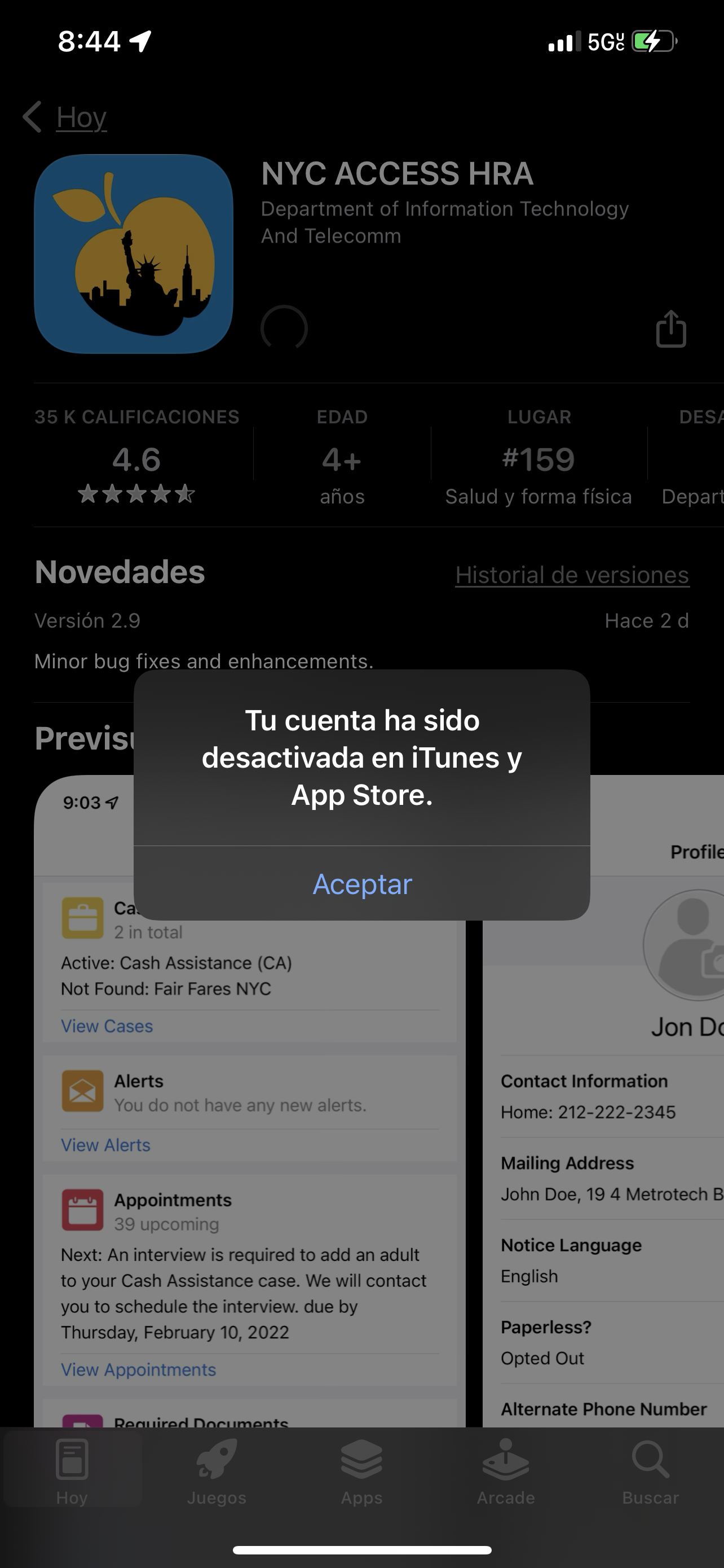 Si ves un mensaje en el que se indica que tu cuenta se deshabilitó en App Store y iTunes, es posible que haya un problema con el método de pago que tengas registrado.