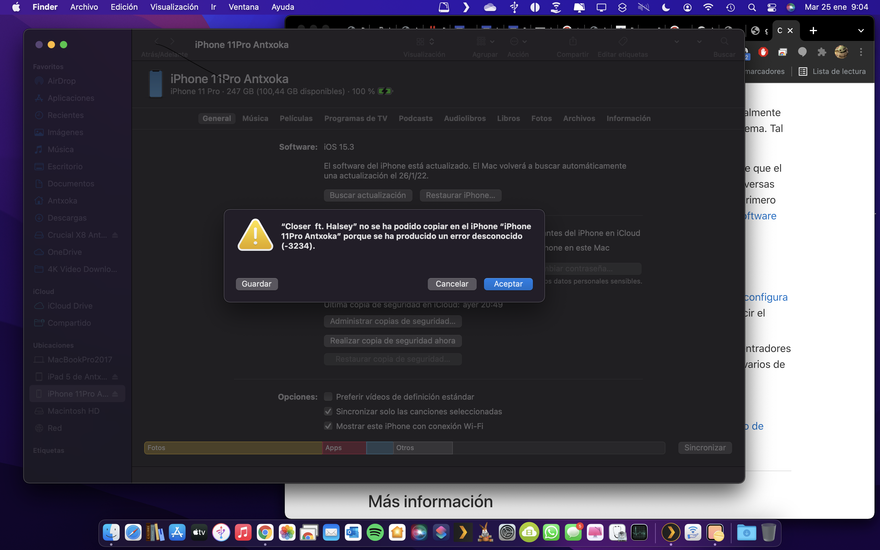 Error desconocido (-3234) Problemas al sincronizar videos musicales propios de macbook a iPhone, iPad...