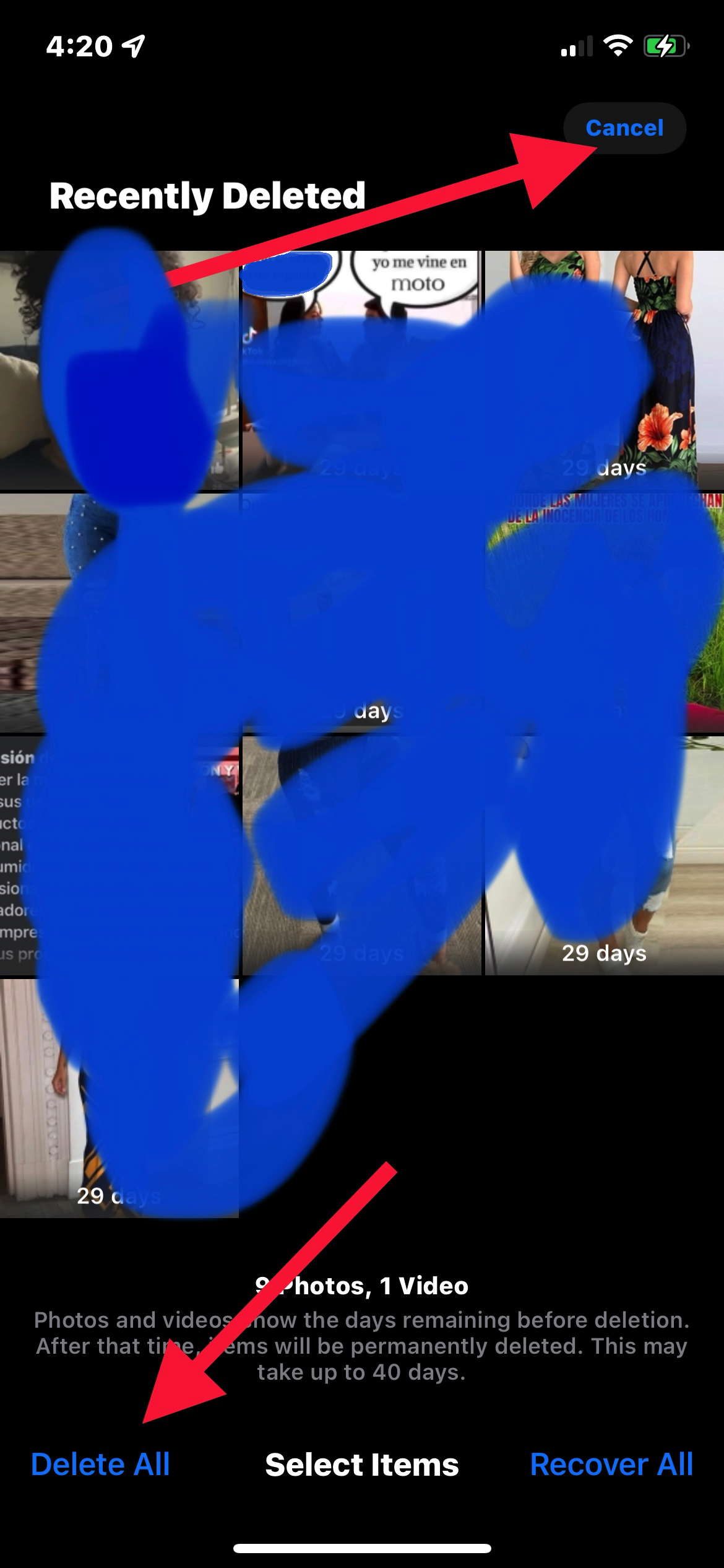 no puedo eliminar las fotos de la carpeta de eliminados y me ocupa mucho espacios, que debo hacer? no puedo eliminar las fotos de la carpeta de eliminados y me ocupa mucho espacios,