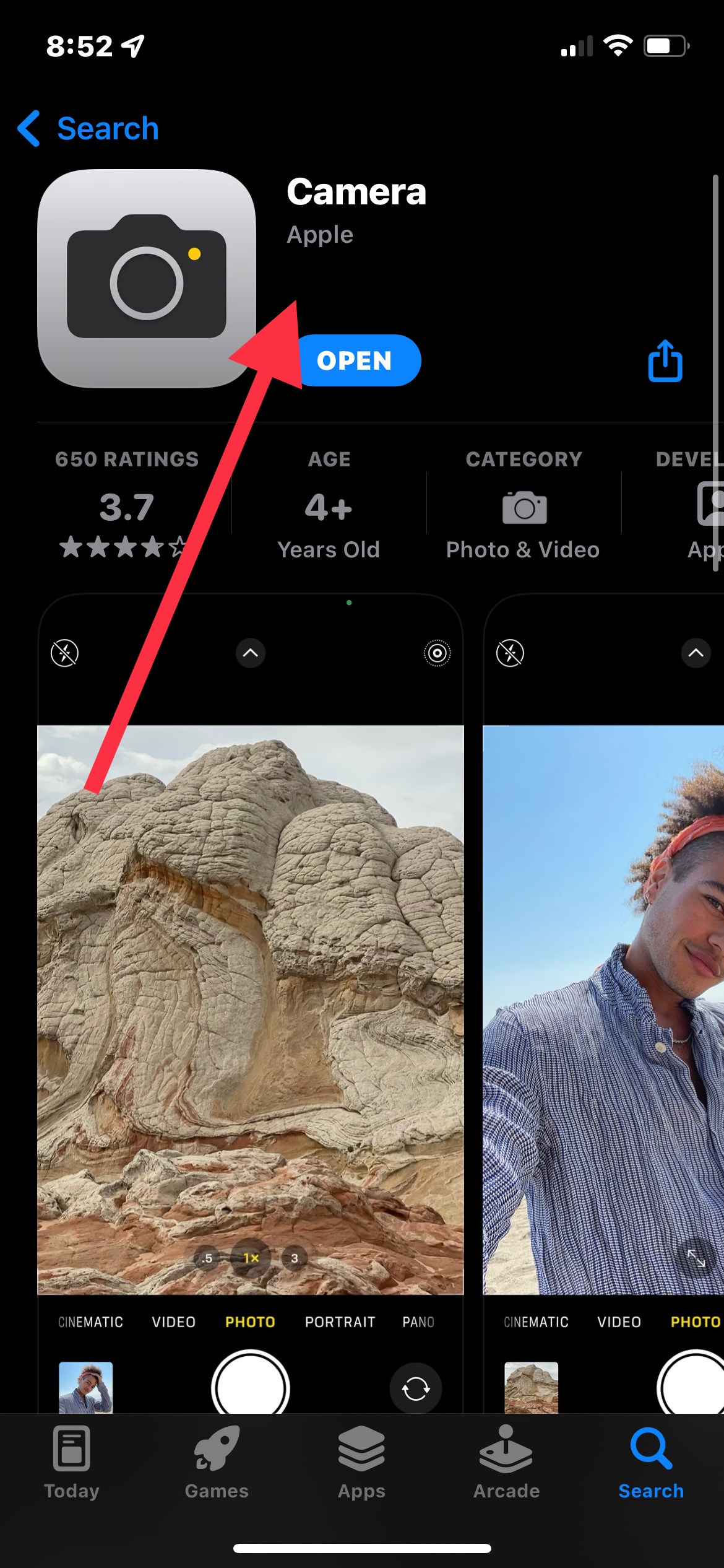 Desde el App Store ingresa en buscar escribes cámara y ahí te mostrará una nube al lado de la app esa es la del iPhone