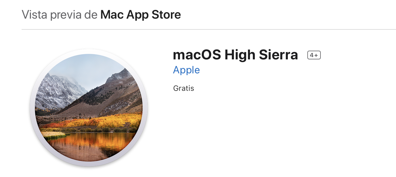 La búsqueda de la versión me lleva a https://apps.apple.com/es/app/macos-high-sierra/id1246284741?mt=12 Donde no aparece la opción de descargar 10.13.