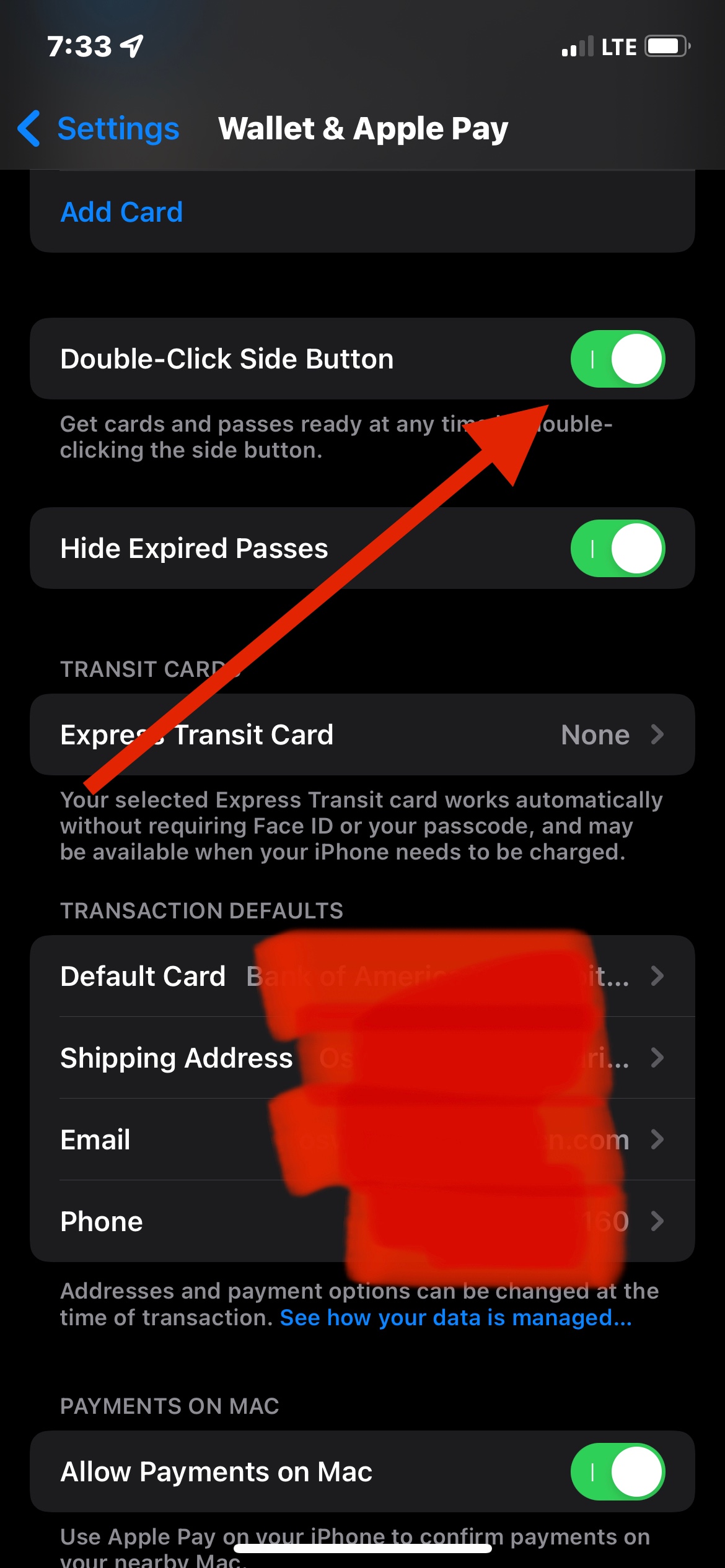 Puedes verificar que esta opción en configuraciones Wallet & Apple Pay esté activada en tu iPhone , la acción se puede hacer cuando el iPhone esté en pantalla bloqueada