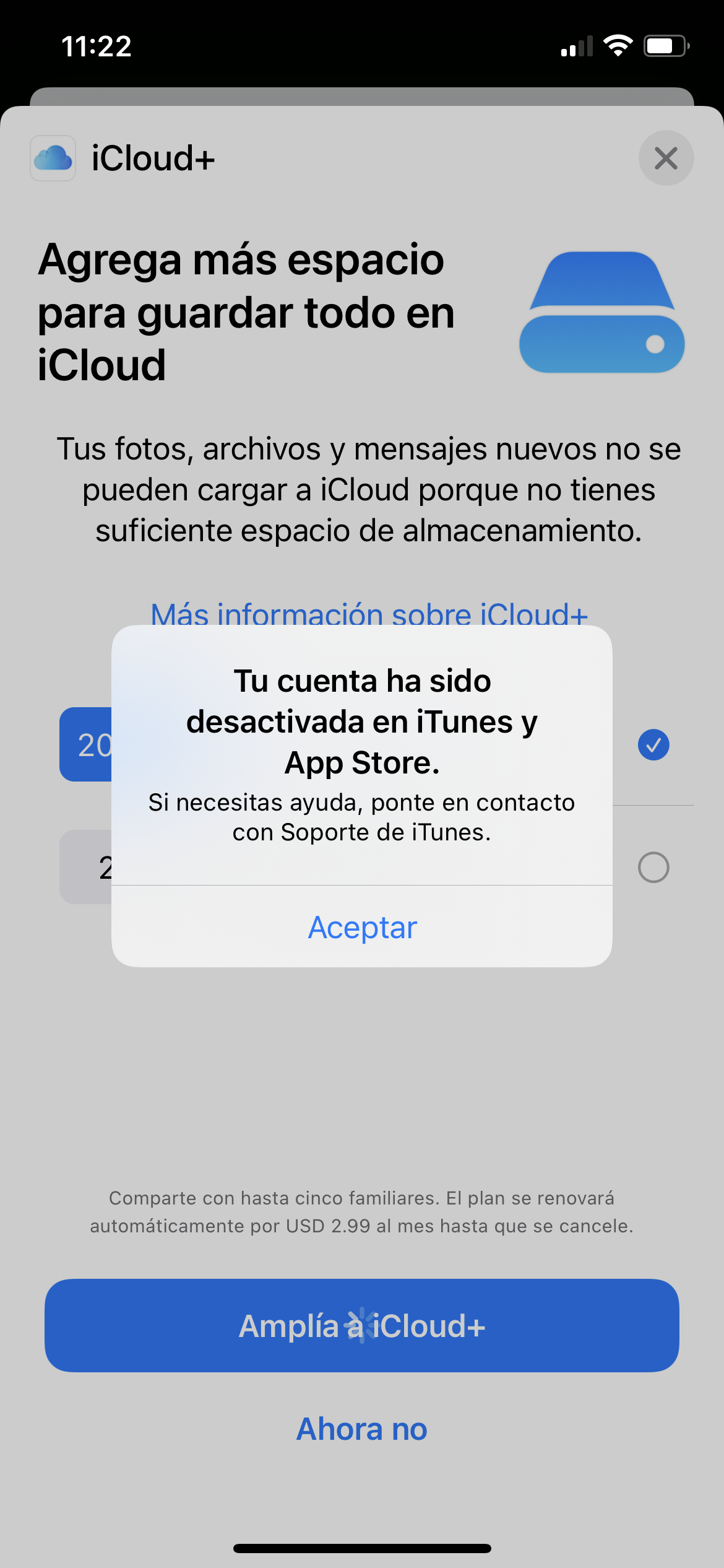 Mi cuenta ha sido desactiva en itunes y App Store