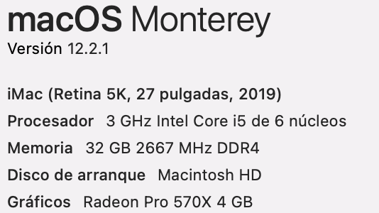 Por lo que veo en tu publicación, tu Mac se trata de una iMac de 27 pulgadas, ¿esto es correcto? En mi caso no he experimentado aún este problema en una iMac similar a la tuya, ello me haría pensar que esto pudiese tratarse de un bug en tu instalación de macOS Monterey, o directamente de un bug de esta versión 12.2.1 que afecta a algunas Mac. Debido a esto, me gustaría recomendarte el que intentarás primero por probar el modo seguro de tu Mac, así como tras restablecer los ajustes del SMC de ella. En caso de que el problema continue, sería prudente el poder comunicarte con el Soporte técnico de Apple, así como reportar esta situación a través del portal en inglés de Apple Feedback: Feedback - macOS - Apple.