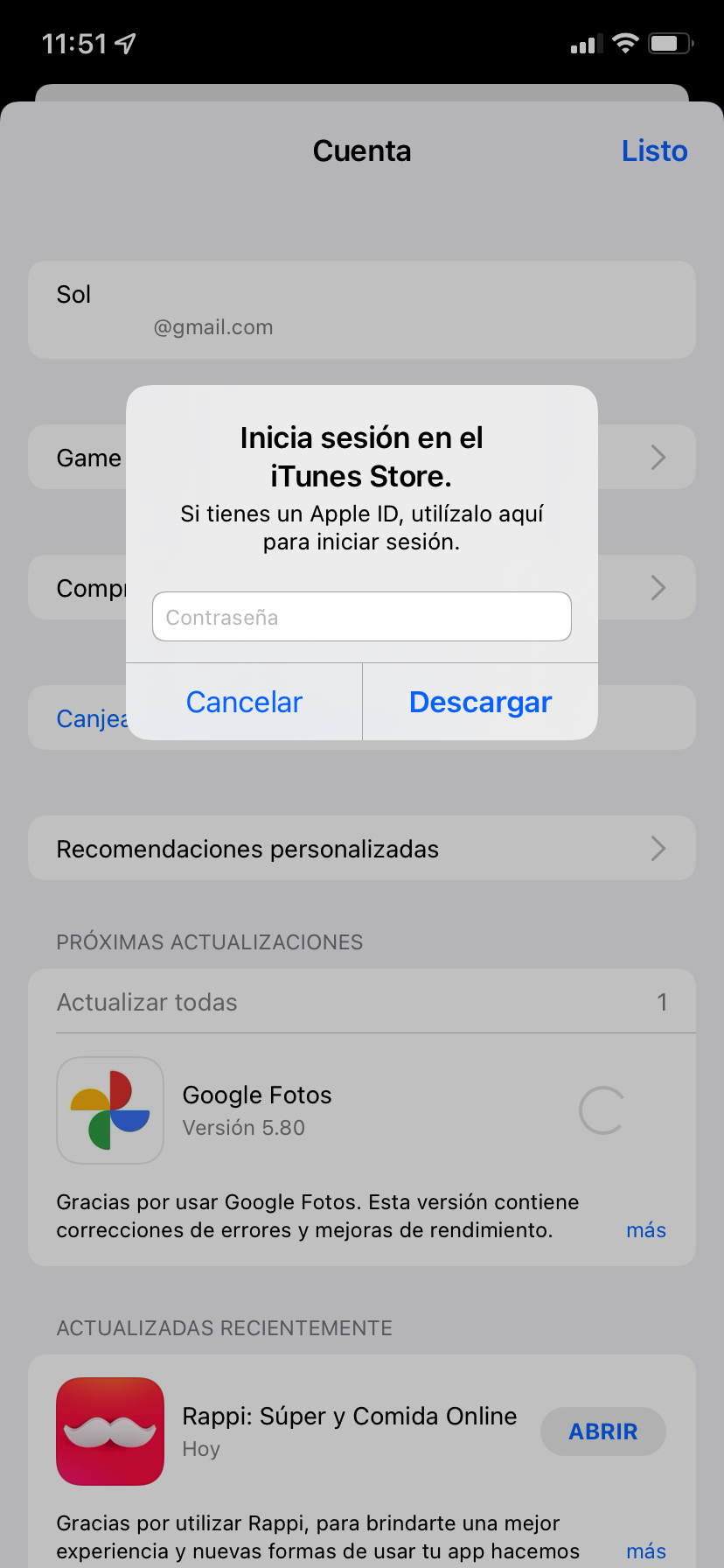 Asegúrate que tienes iniciada sesión correctamente en al App Store. Lo podrás ver en los Ajustes del dispositivo, iTunes Store y App Store, tu ID. Si tu ID aparece en color azul, púlsalo y selecciona cerrar sesión. Apaga el iPhone, enciéndelo pasados un par de minutos y vuelve a iniciar sesión en el iTunes Store y Apps Store, en los Ajustes del dispositivo, iTunes Store y App Store.