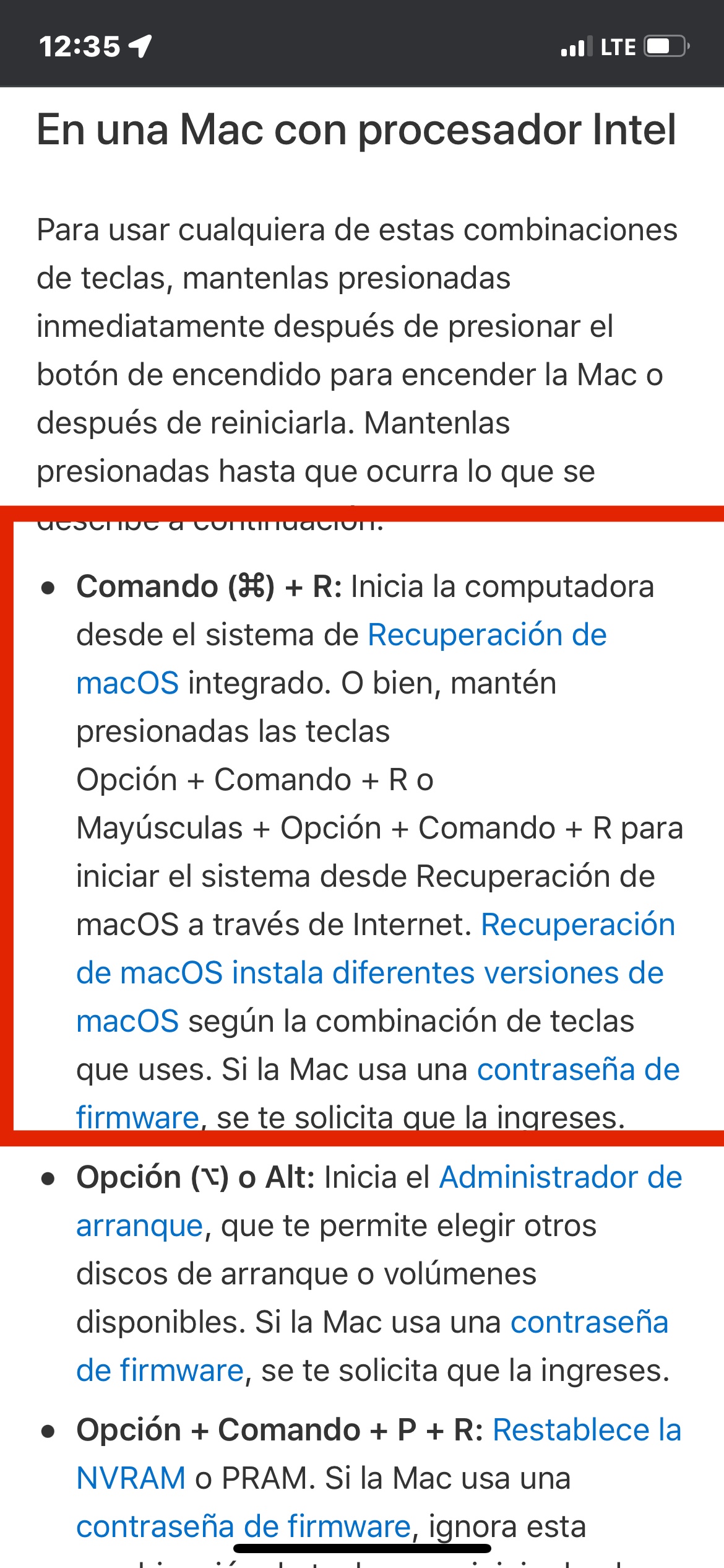 Gracias, pero no funciona. Me sale carpeta con símbolo de interrogación cuando pulso CMD-OPT-R