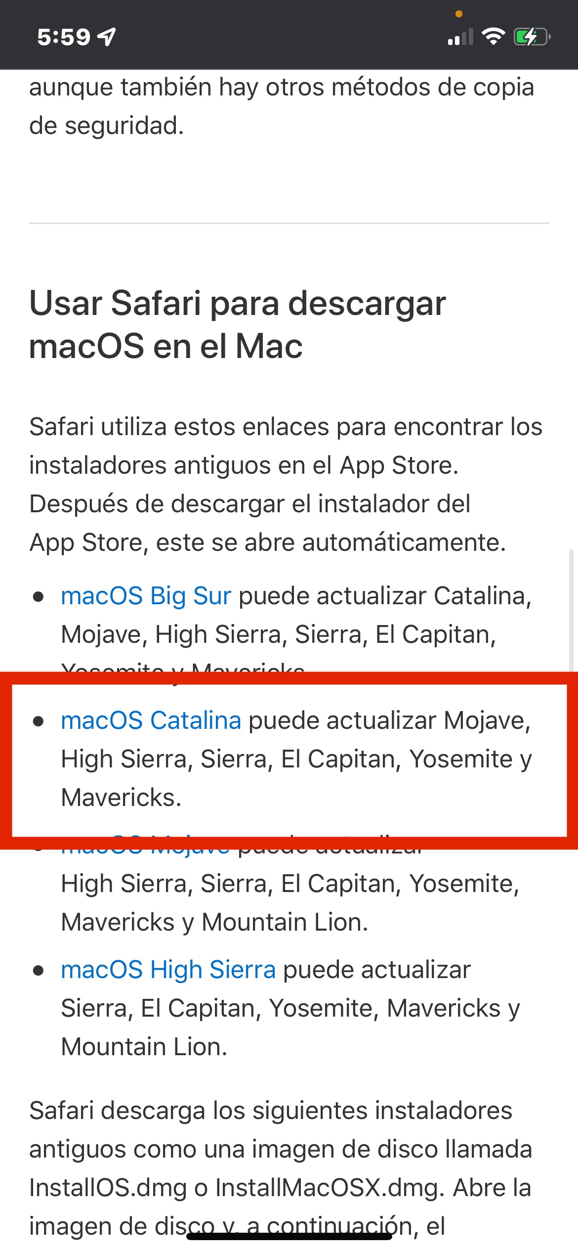 Ok ahora si desde este enlace vas a ver donde dice Con macOS Catalina , debes darle click ahí , te hice una imagen marcada donde debes ingresar , abre el enlace desde tu mac