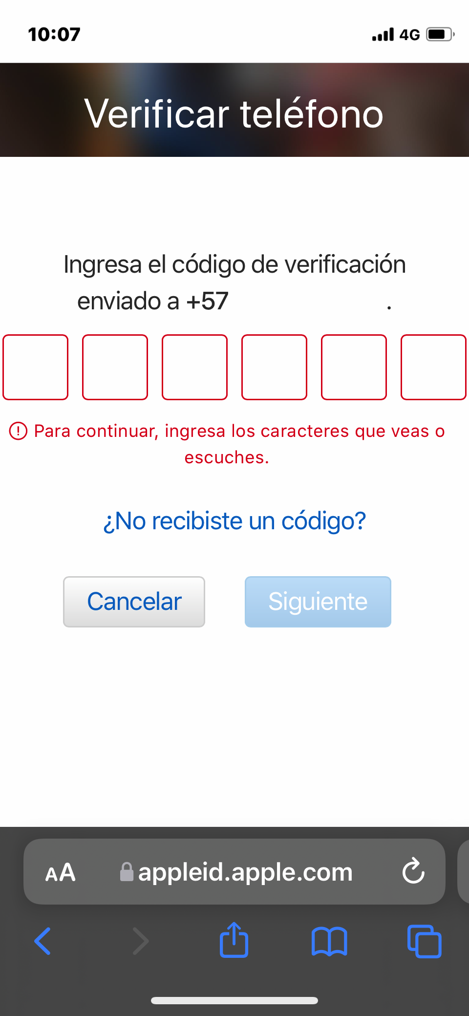 No puedo crear un Apple ID, lo he intentado en varios dispositivos con distintos correos y al momento de colocar el código de seguridad enviado a mi número telefónico me da una respuesta de error, ésta no consuelda con el paso.