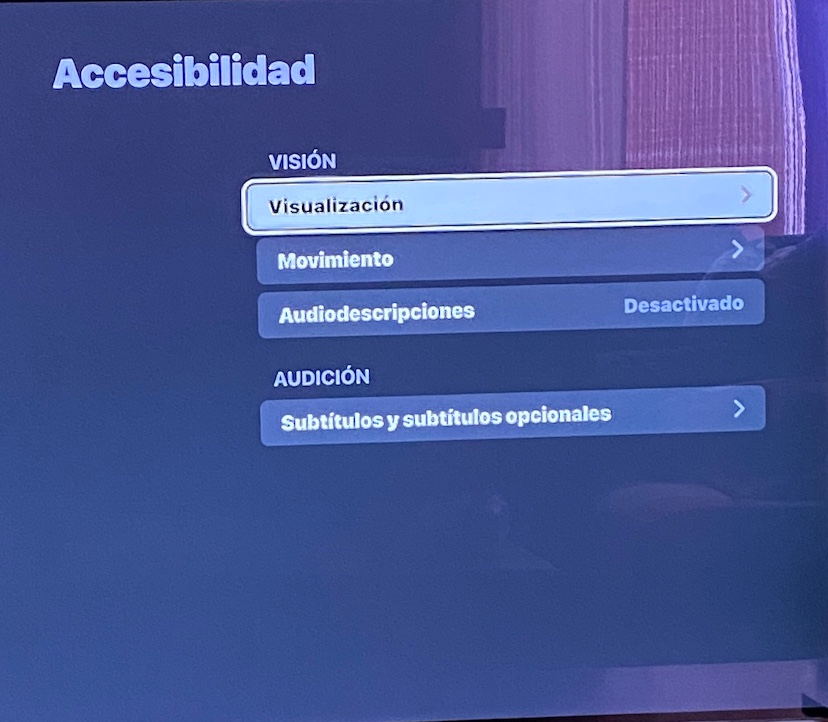 Activa la sensibilidad a la luz, eso ajusta el nivel de atenuación o brillo de la pantalla. En el Apple TV, ve a Accesibilidad > Ajustes de pantalla y, a continuación, activa Sensibilidad a la luz. Seleccione Intensidad y, a continuación, deslice el dedo para ajustar el porcentaje de intensidad de la pantalla.