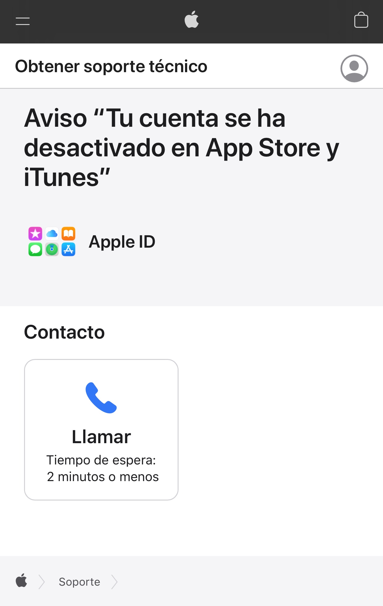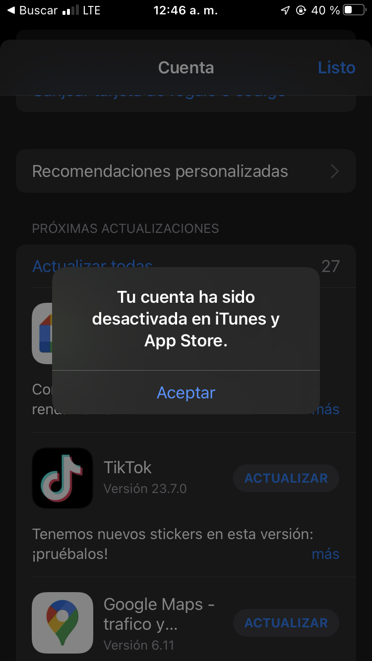 Si ves un mensaje en el que se indica que tu cuenta se deshabilitó en App Store y iTunes, es posible que haya un problema con el método de pago que tengas registrado.