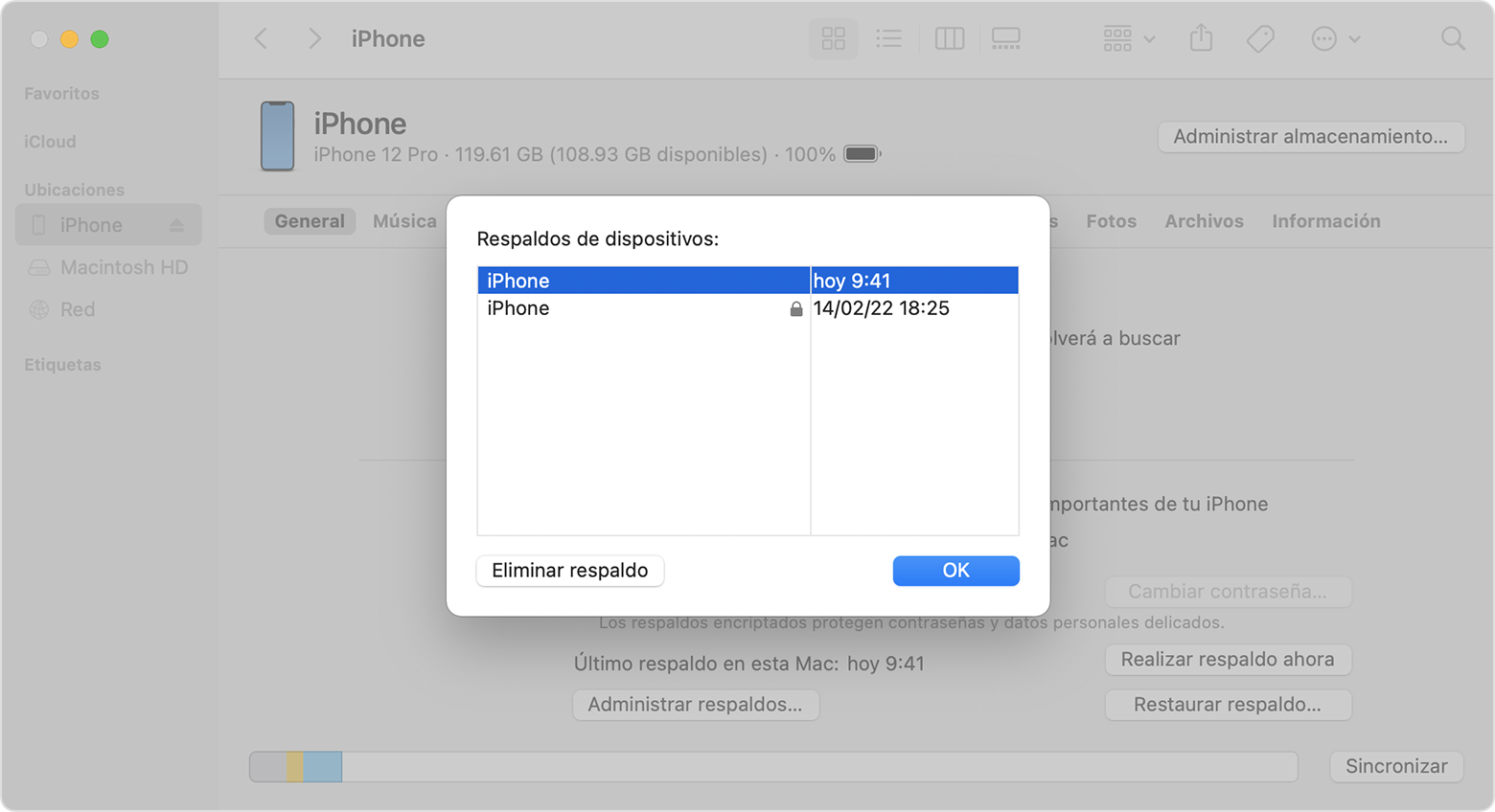 - Como la carpeta con el respaldo puede tener un nombre que sea complicado asociar a tu iPhone en caso de tener respaldos de otros dispositivos, también puedes seleccionar la opción "Administrar respaldos" en iTunes y seleccionar el respaldo de tu iPhone para luego hacer clic derecho sobre el y elegir la opción de Mostrar para que se abra la ubicación de ese respaldo en particular.