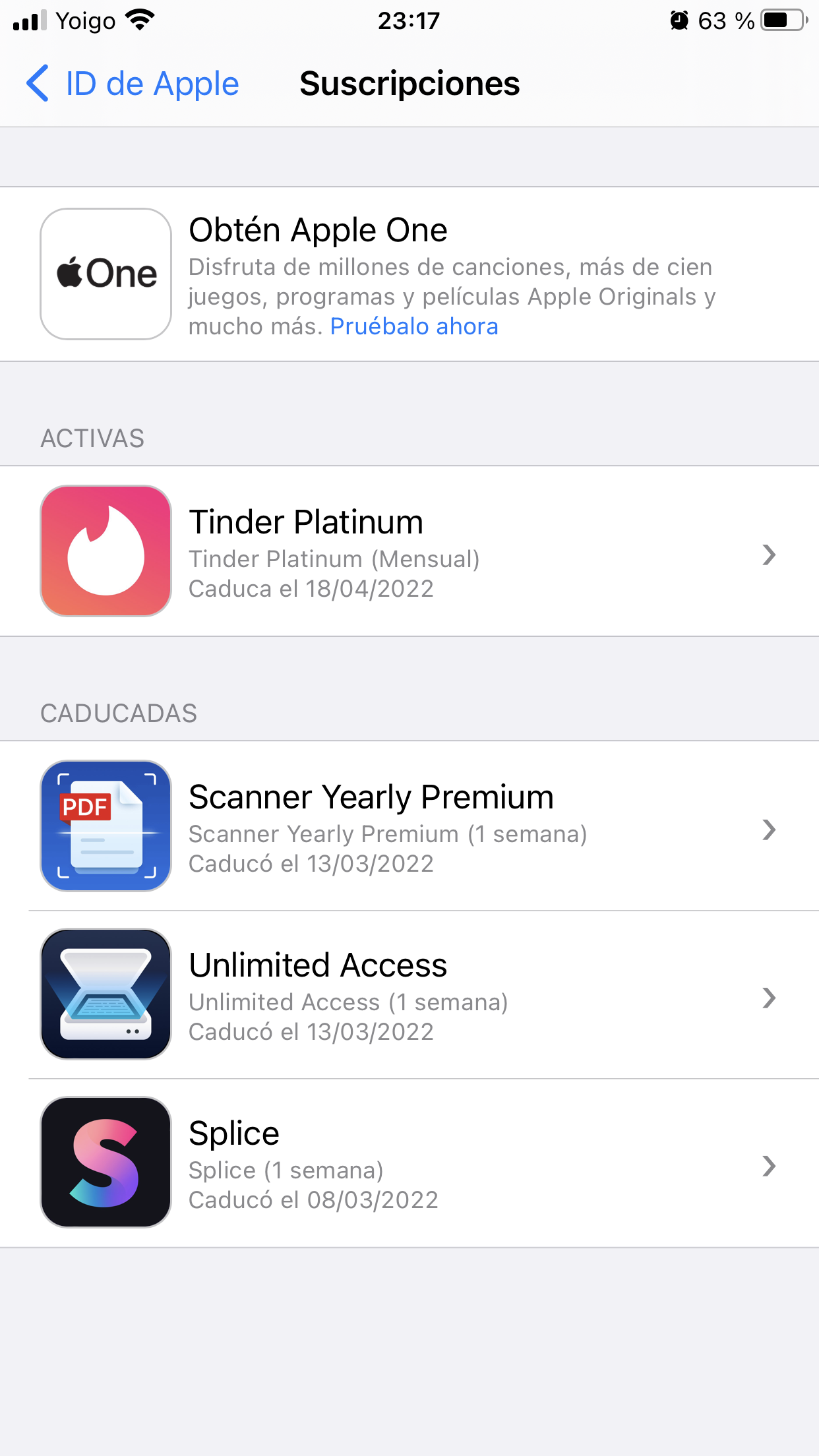 Cancelar subscripción de contenido comprado en Apple Store