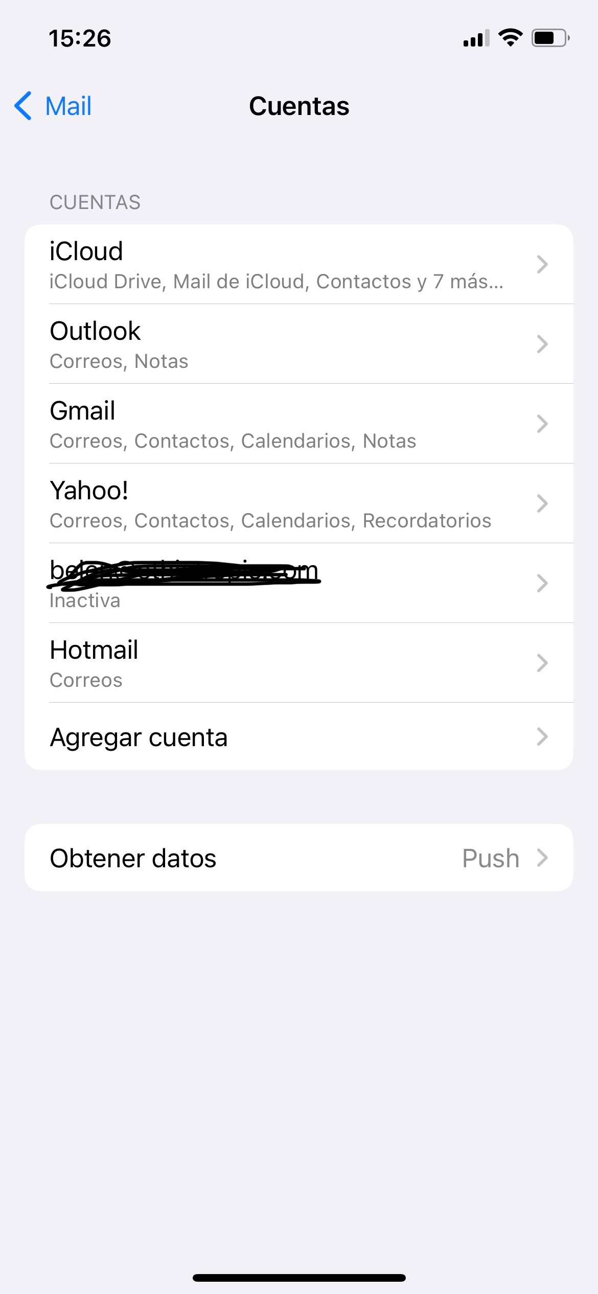 ¿Cómo hago para eliminar una cuenta de correo electrónico de mi IPhone 12, IOS 15.4.1?