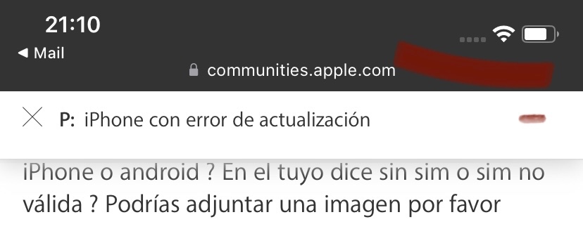 Error de actualización del iOS o datos móviles? Si tienes modo de avión o vuelo activado desactívalo , retira la SIM card , reinicia el iPhone , conectado a wifi coloque la SIM card , se tiene modo de ahorro de batería activo desactívelo tambien si no te resulta contacta a tu operador y solicita un reemplazo de la SIM card puede que se daño, la actualización de datos la envía el operador no apple pero tu iPhone debe tener conexión a wifi para que se actualice