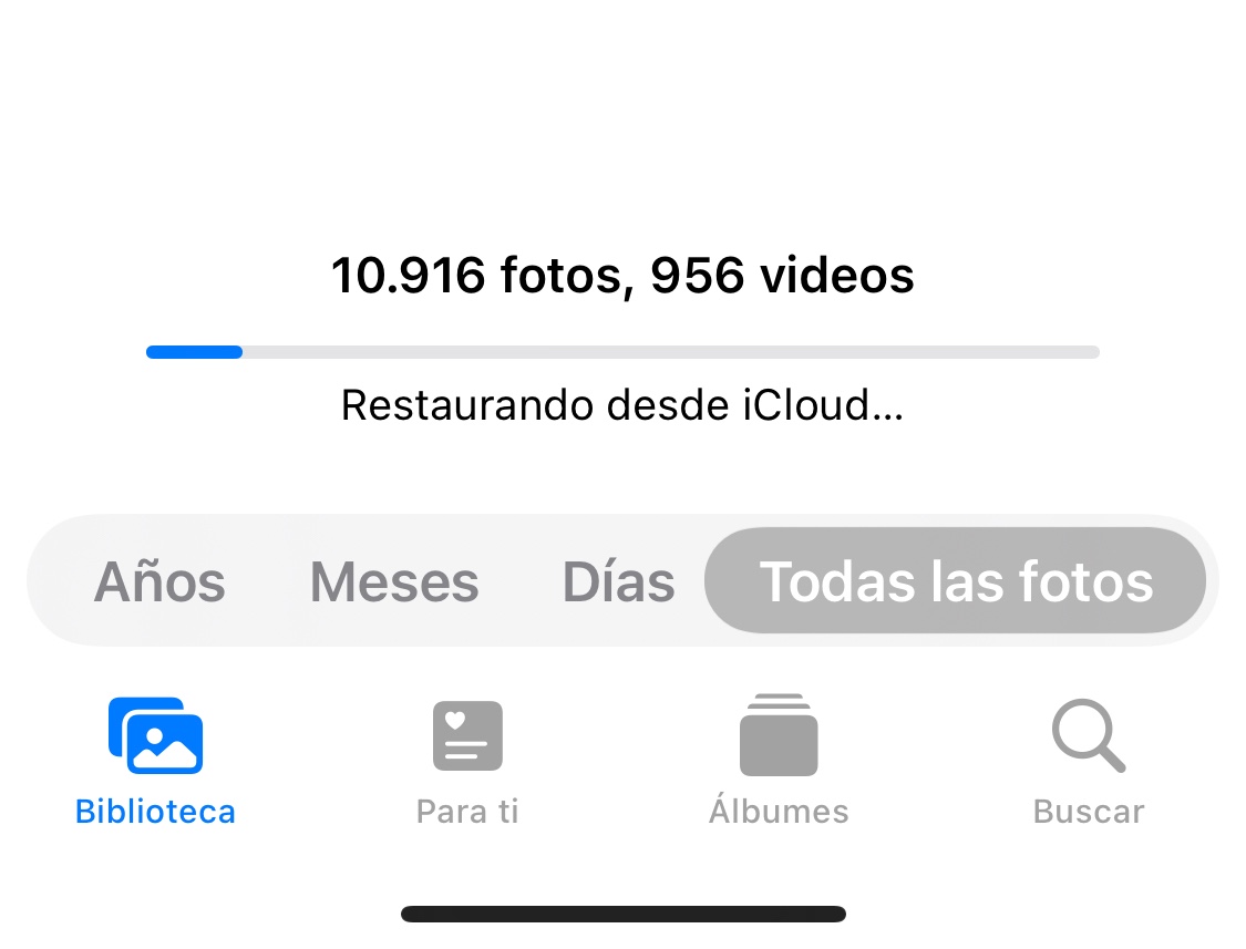 Tras la última actualización he perdido todas mis fotos y videos desde fotos, la app dice “restaurando desde icloud 10.916 fotos, 956 videos” pero lleva así desde ayer y sigo sin poder recuperarlas, incluso aumente el almacenamiento y nada. Que debo hacer