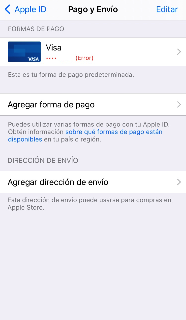 Pero eso no entiendo muy bien . Si mi tarjeta de débito está registrado en APPLE ID como lo tengo que tomar como CRÉDITO EN APPLE ID o FACTURACIÓN MEDIANTE EL CELULAR o OTRO MÉTODO DE PAGO ? Además me sale este error y no se porque si se han cobrado 2 montos de más de 300 soles como es que sale error ? Eso puede afectar al reembolsar mi dinero ?