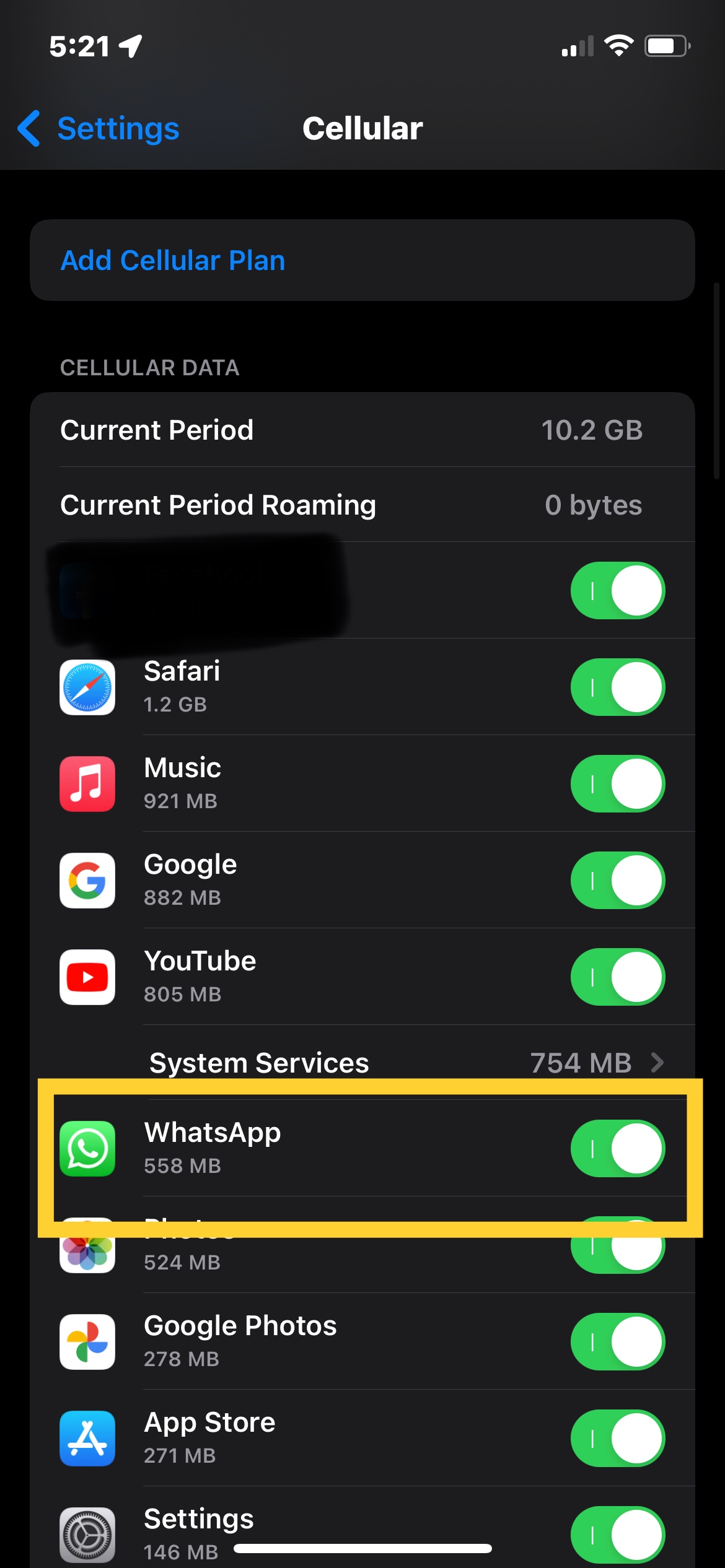 Verifica en ajustes/datos celulares/ si WhatsApp está activado