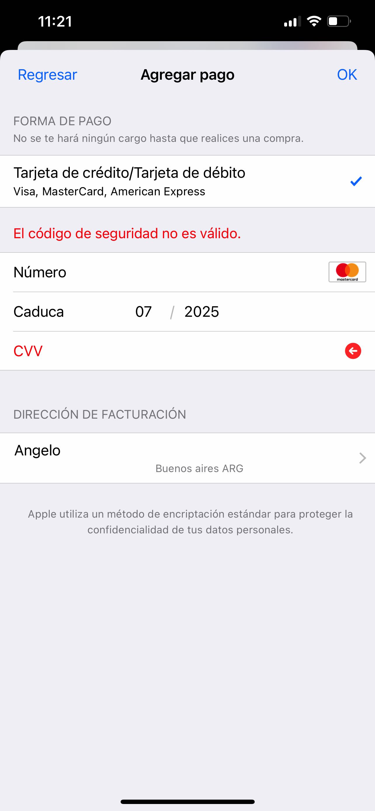 La tarjeta que uses debe ser de crédito o débito (no de prepago), tener dinero suficiente y estar a tu nombre. Si no te la acepta, pregunta en tu banco para ver si están aprobando su uso en iTunes que es un comercio electrónico. Cambiar, añadir o eliminar métodos de pago del ID de Apple - Soporte técnico de Apple
