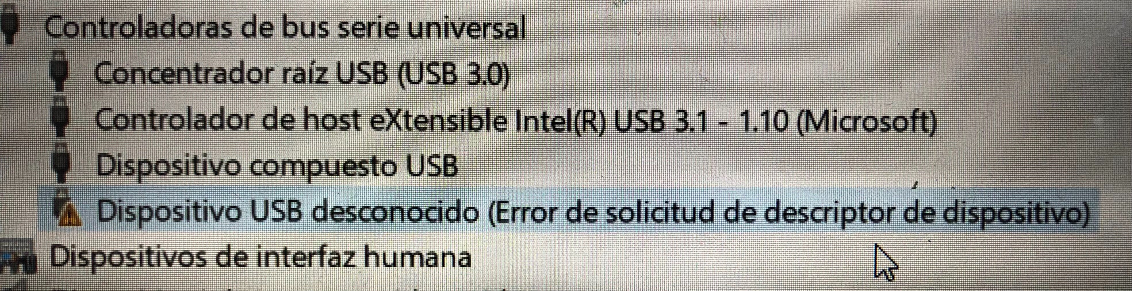 El iPhone 11 aparece en el computador que: dispositivo USB DESCONOCIDO (error de solicitud de descriptor de dispositivo) deseo iniciar iTunes ya que el celular está bloqueado por iTunes, pero no me deja conectarlo a la computadora