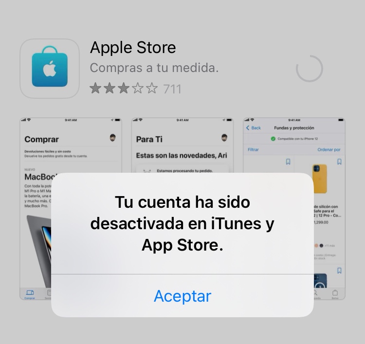 Si ves un mensaje en el que se indica que se desactivó tu cuenta en App Store y iTunes Store, comunícate con el Soporte técnico de Apple para obtener ayuda.