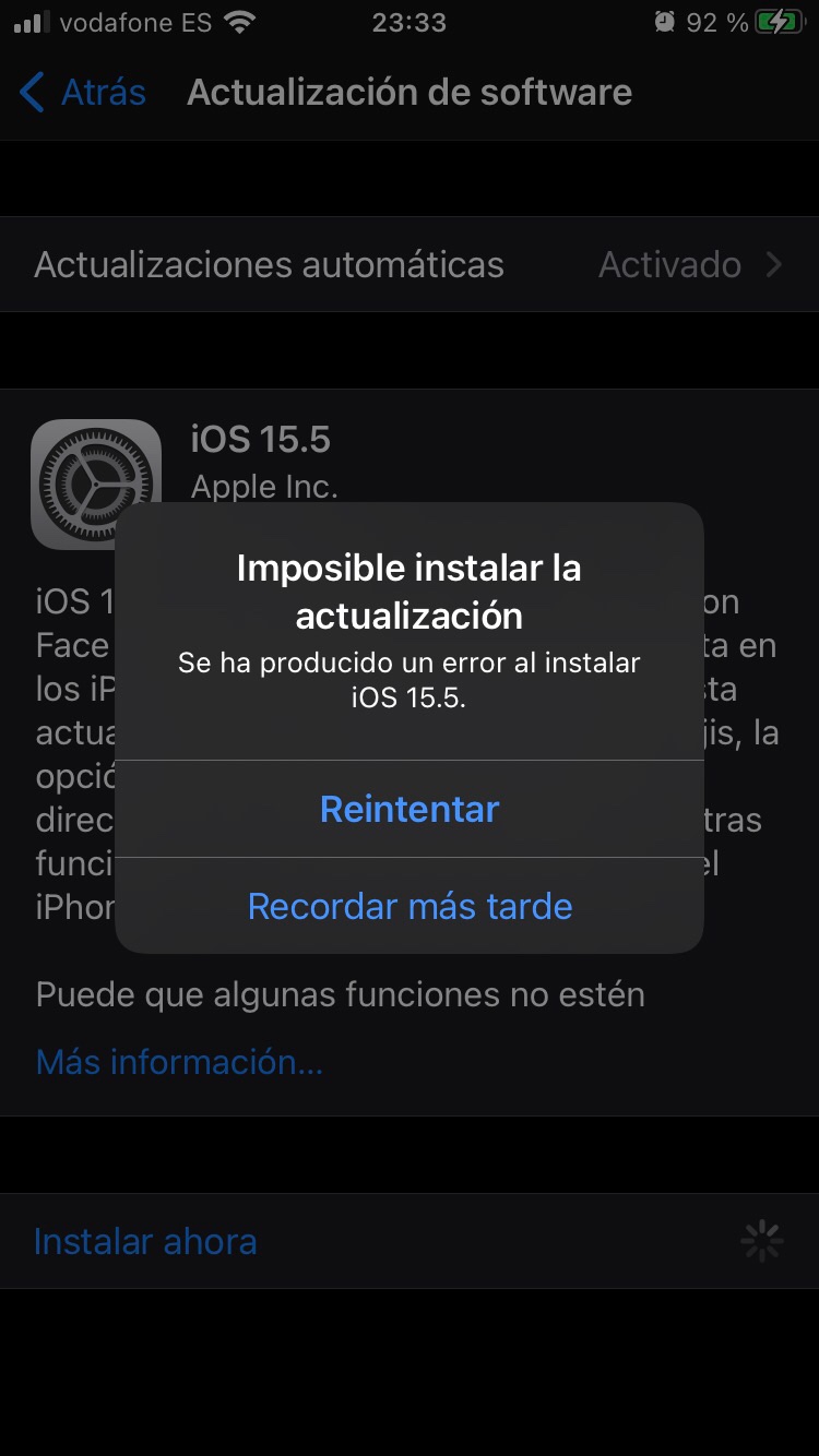 No me deja actualizar la última versión del software o cuando le doy a instalar porque me sale la notificación me da error, que puedo hacer?
