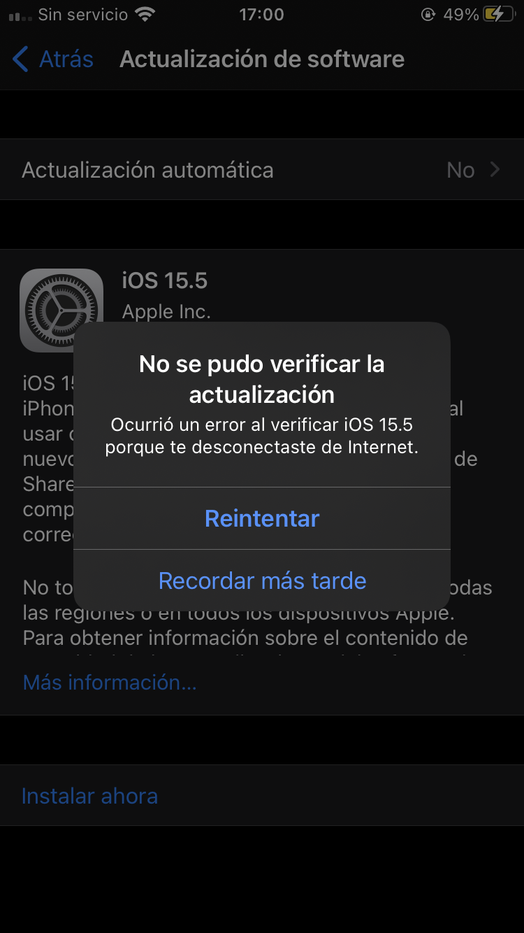 Disculpen pero mi iPhone actualmente me presenta fallas ya que no me deja realizar llamadas y al querer instalar la actualización que me pide me da error según por qué me desconecte de internet cuando siempre está conectado
