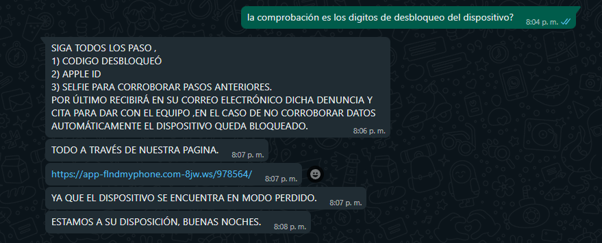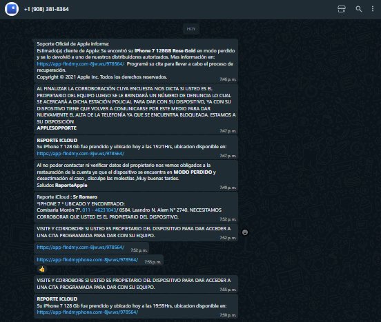 Hace 1 mes me robaron mi iphone, y hoy me llega un mensaje de este numero +1 908 381 8364