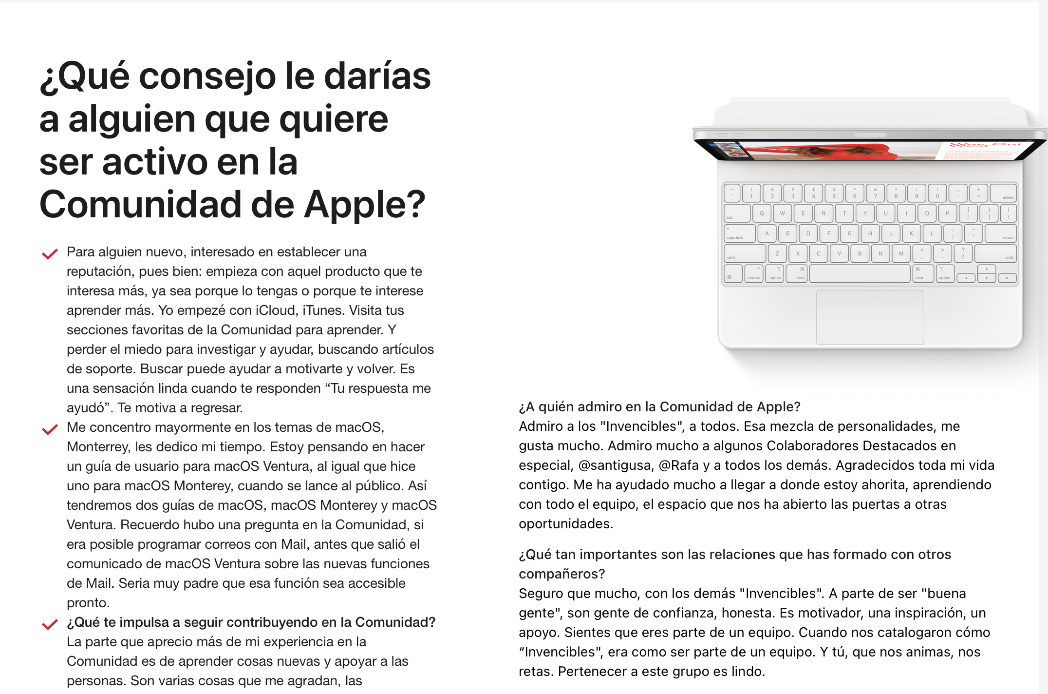 ¿Qué consejo le darías a alguien que quiere ser activo en la Comunidad de Apple?