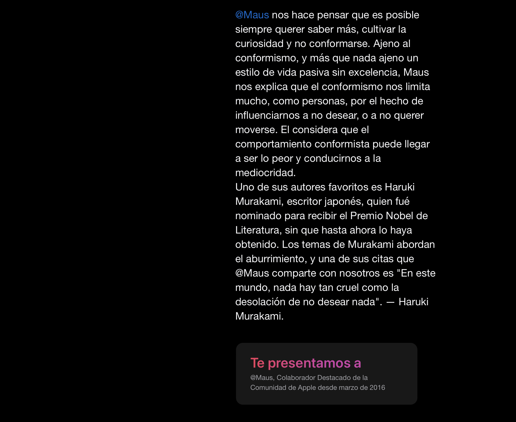 Te presentamos a @Maus, Colaborador Destacado de la Comunidad de Apple desde marzo de 2016.