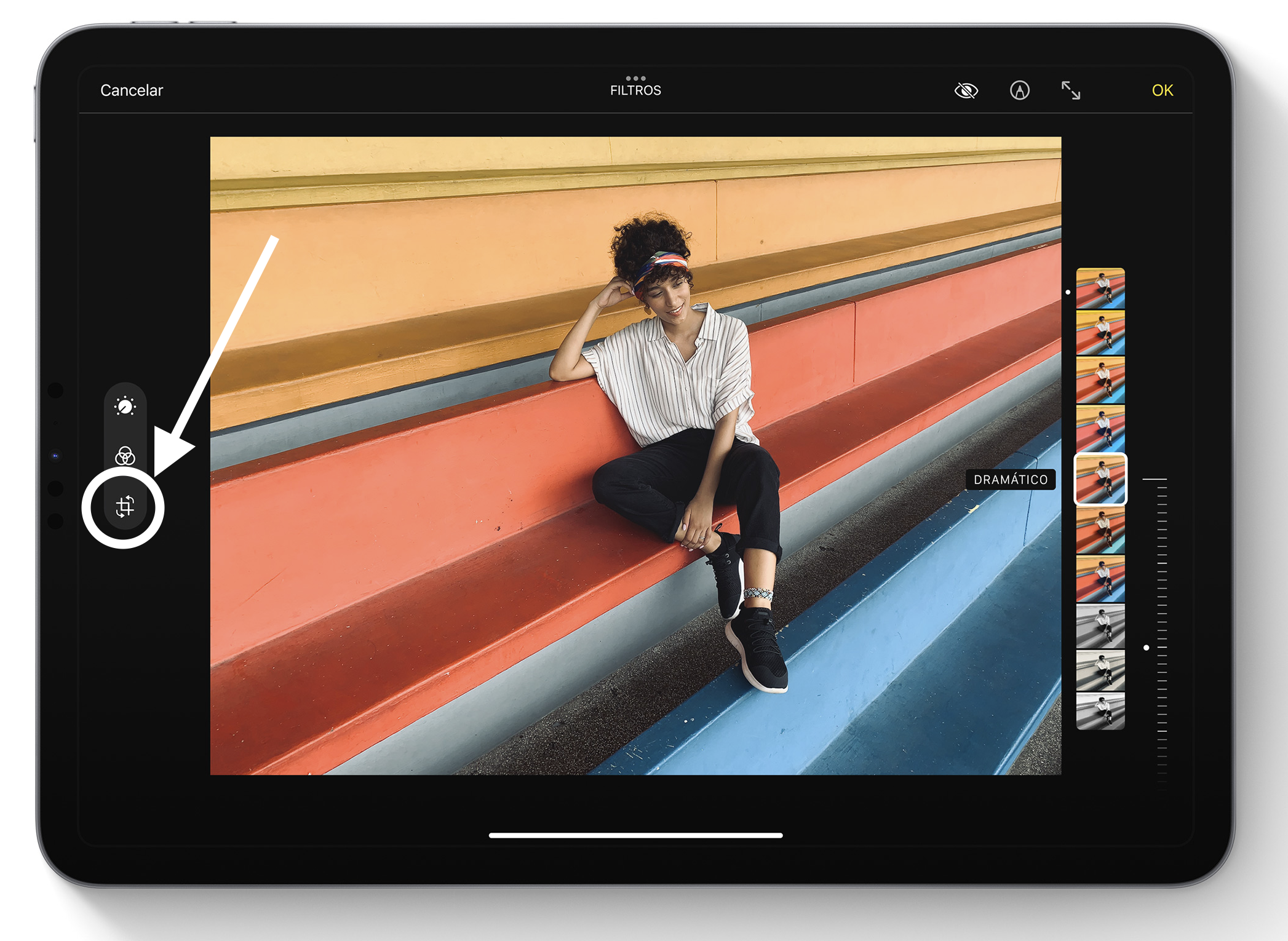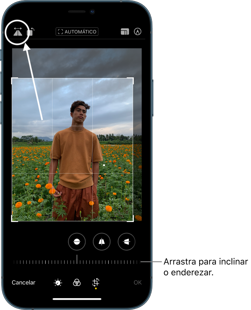 Disculpa, pero no entiendo bien tu pregunta. ¿Te refieres que en el iPad, cuando vas a ver una foto, la ves como si estuviera volteada la imagen? Si es así, sigue estos pasos y vemos a ver si lo solucionamos. Primero ve a la foto que desees, después pincha en el botón superior de «Editar». Ahora pincha en el siguiente botón: y una vez que te encuentres aquí dale al botón que se encuentra arriba 👇