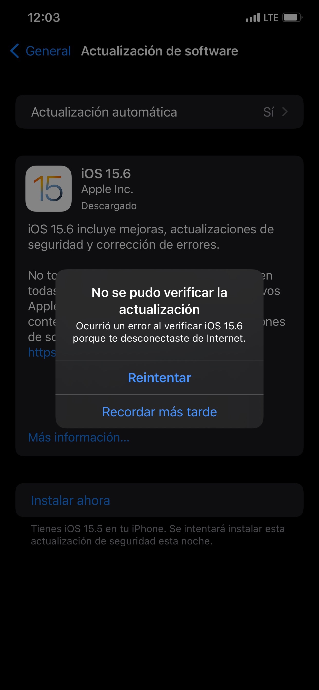 Intenta volver a actualizar el dispositivo con la misma red. Si aún ves uno de estos mensajes, intenta actualizar el dispositivo usando de otra red o actualiza el dispositivo con tu computadora: