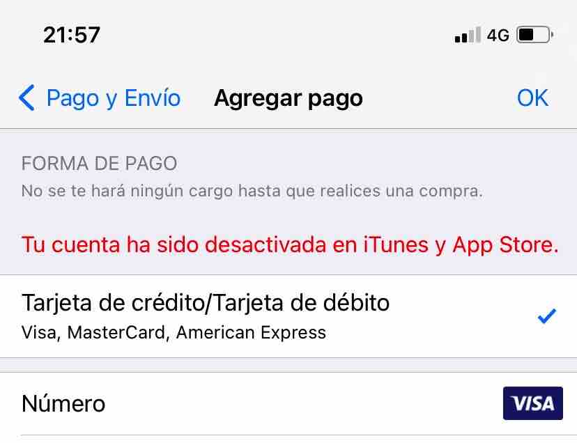 Si ves un mensaje que indica que se ha desactivado tu cuenta en el App Store y iTunes, ponte en contacto con el Soporte técnico de Apple para obtener ayuda.