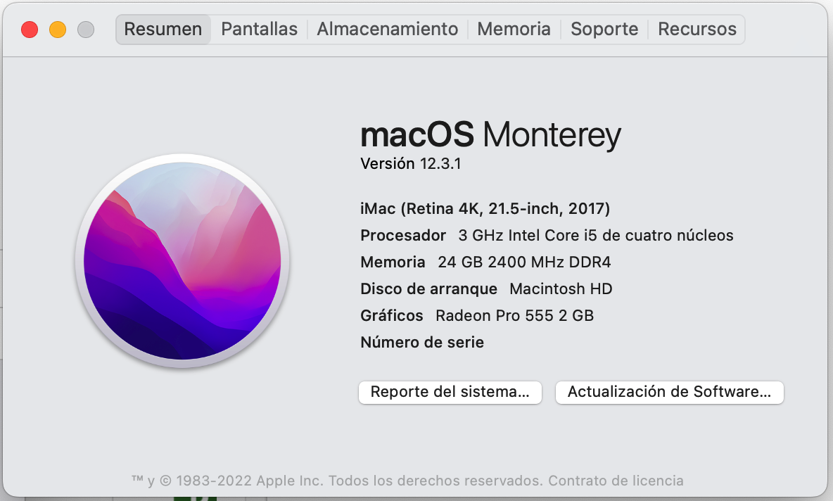 Me ocurre en ambos iMac con iOS Monterrey 12.3.1