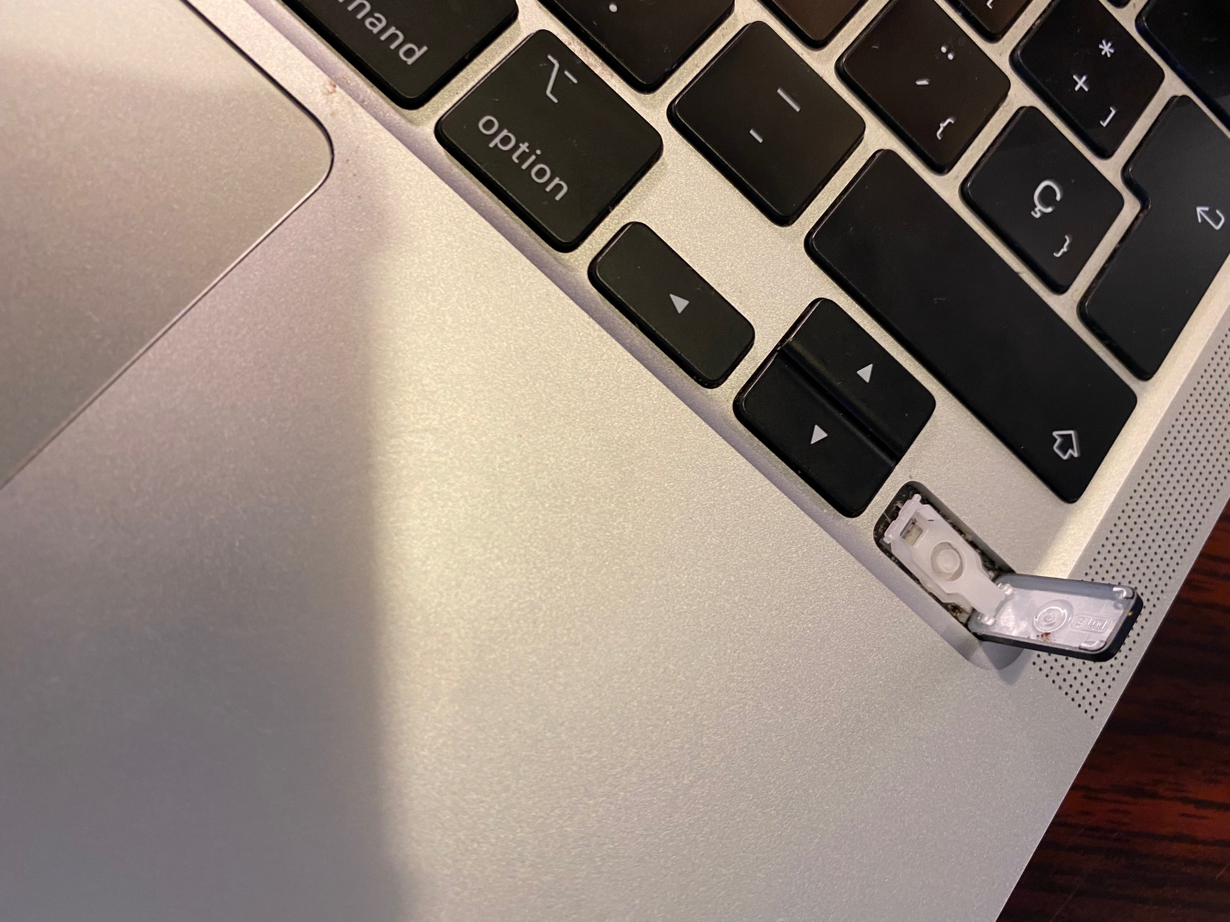Se me salió sin querer esta tecla, he tratado de quitarla y ponerla de nuevo pero solo se engancha de el lado derecho.